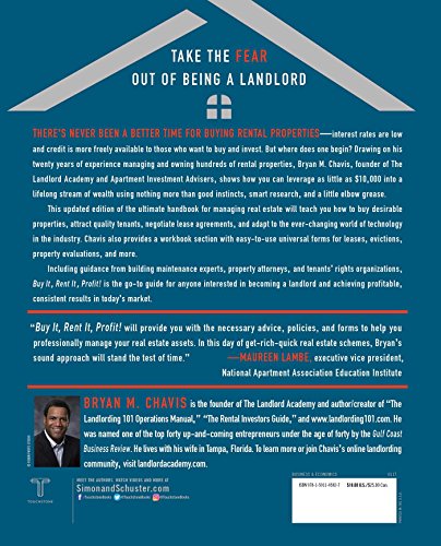 With more than twenty plus years of experience in real estate and as the founder of The Landlord Property Management Academy, Bryan M. Chavis knows all phases and aspects of working with rental properties. In Buy It, Rent It, Profit! he explains why rental properties are this type of wise investment in today’s real estate world and outlines the steps and systems you wish to have to implement to grow to be a successful landlord and property manager.