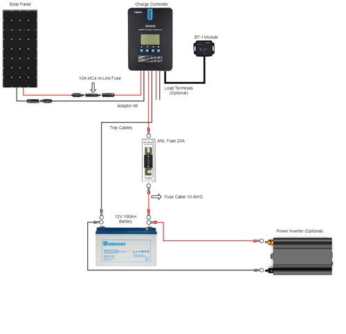 4-Stage battery charging process for a rapid, efficient, and safe battery charging RS-232 port compatible for extra features Compatible with Renogy Bluetooth Module and Renogy BT APP for remote monitoring