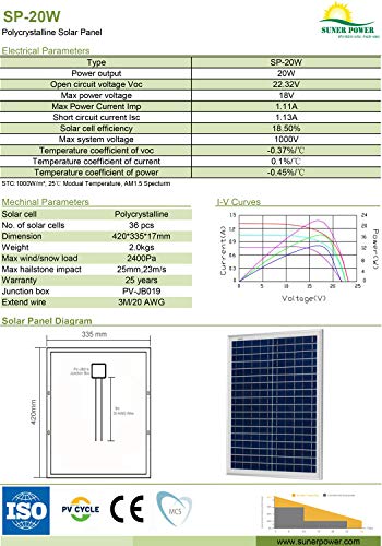 SUNER POWER 10W 20W 30W 50W Solar Panel Kit + 10A Photocell Waterproof Charge Controller+ SAE Connection Cable Kis