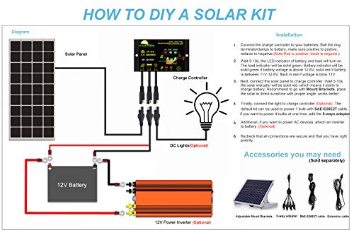 Ideal solar power kit for variety of off grid applications including shed, cabin, gate opener, etc where 12V batteries is used as well as charge and maintain Cars, RVs, Boats, Trailer batteries.