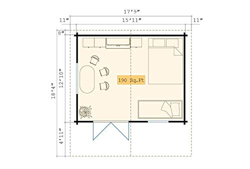 The Gaston is an exquisite DIY cabin concept with an overhanging roof around the front of the structure. The windows and doors let the sunshine in to embellish the indoor space. Create a reading retreat, hobby room, workshop or secure haven. Entertain guests inside this old fashioned backyard cabin or celebrate life free from distraction inside its walls.