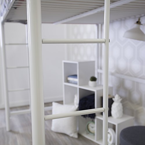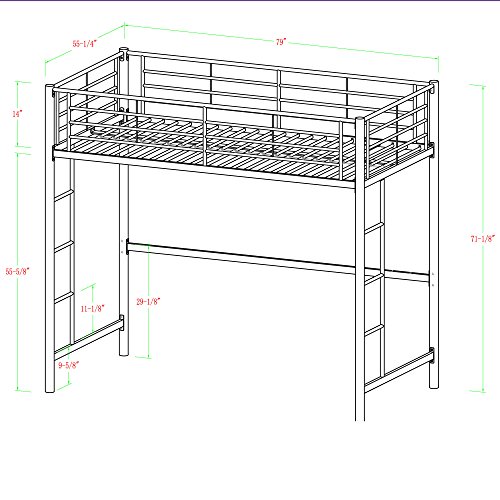 Premium Metal Full Size Loft Bed. Beloved for its compact foot print, this loft bed is a necessity for your children’s bedroom. The sturdy, steel frame promises stability and serve as to Make stronger a full size mattress and up to 250 pounds. Features full length guardrails and two integrated ladders, one on every end. This ideal space-saver is the easiest addition for your bedroom. Features: Supports 250 lbs. Powder-coated finish Comprises plenty of options below loft Conforms to the recent consumer product safety standards Make stronger slats included, no box spring needed Ideal for space-saving needs Maximum advisable upper mattress thickness of 9 in. Does NOT include mattresses or bedding Ships able-to-assemble with step by step instructions Materials: Powder-Coated Steel Dimensions: 55″L x 79″W x 71″H Weight: 89 lbs