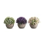 OPPS Mini Artificial Plants Plastic Fake Green Grass Flower Topiary Shrubs with Gray Pot for Home Décor – Set of 3